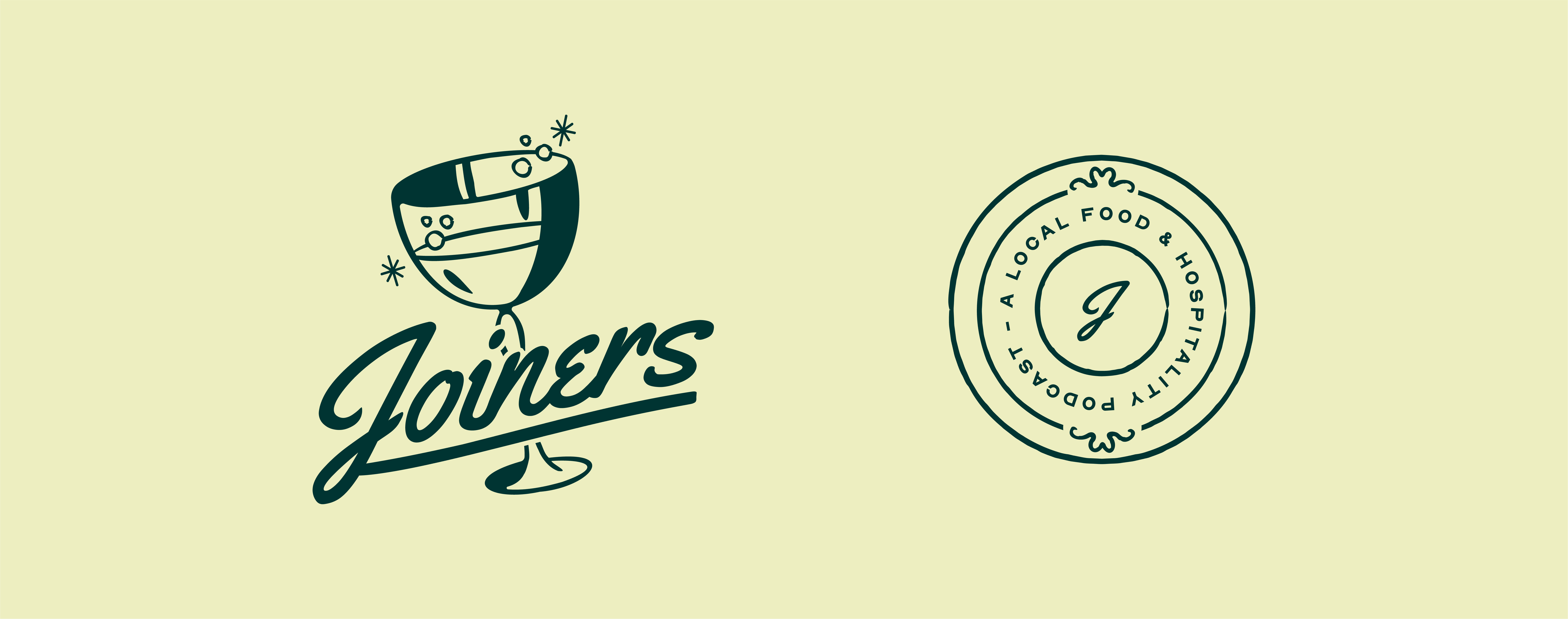Joiners is a podcast hosted by Tim Tierney (Stock) and Danny Shapiro (Scofflaw). They take listeners on a casual stroll through the world of hospitality by chatting with its most colorful characters. The name "Joiners" derives from restaurant industry jargon, referring to a person who joins a table where others are already eating or drinking. We sifted through vintage restaurant ephemera like matchbooks, menus, and napkins to create an identity reminiscent of 1930s Chicago steak-houses and cocktail bars. We included a collection of illustrations to use throughout their branding and for alternate segments, like Taste Test.